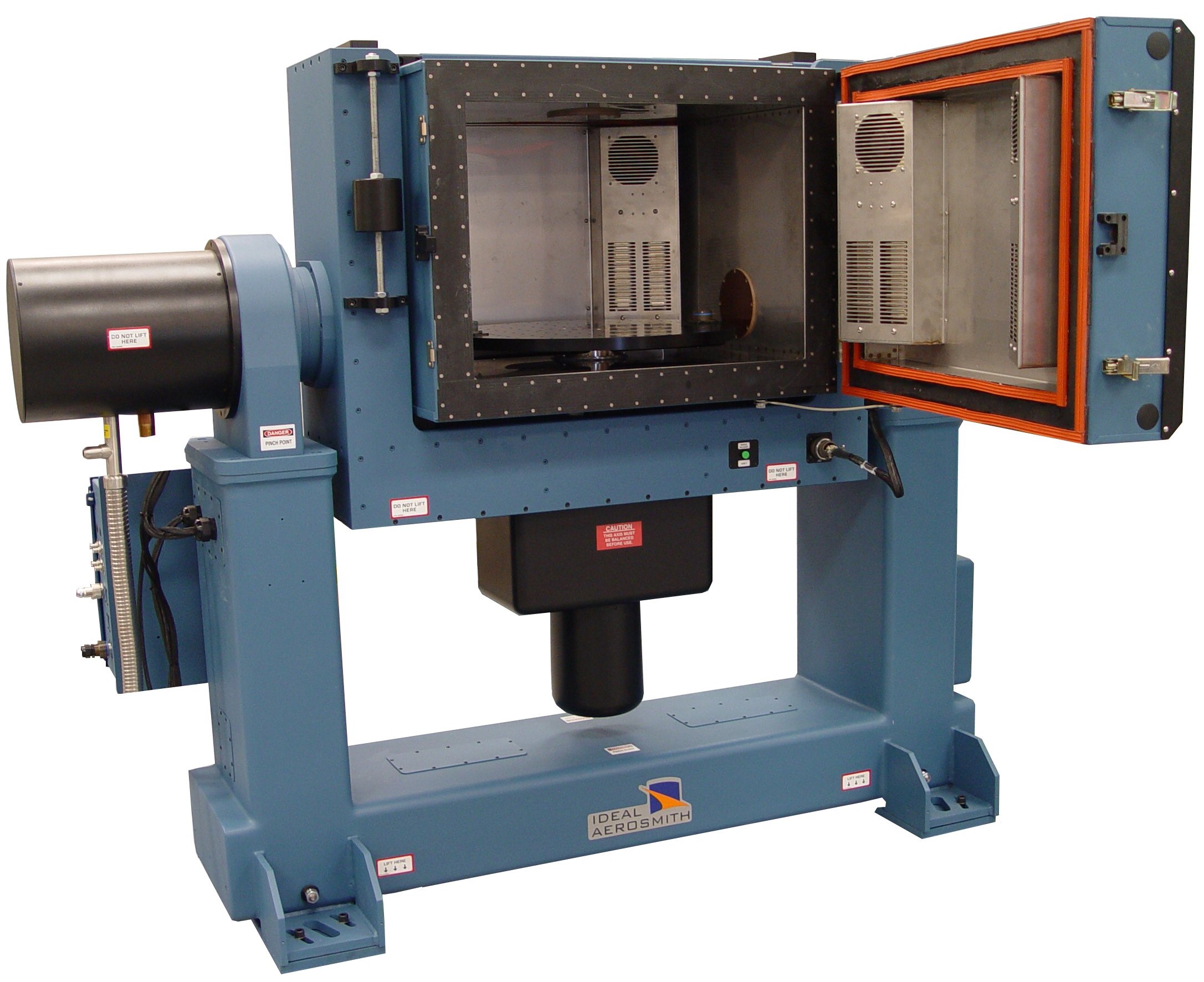 Each of the calibration parameters from the sensor model vary with temperature. A thermal calibration over the sensor's operating temperature range can be performed using a thermal chamber to help mitigate errors due to temperature. As shown in Figure 3.2c, often times a rate table calibration and a tumble test calibration are performed in a temperature controlled thermal chamber to conduct both calibration processes simultaneously.